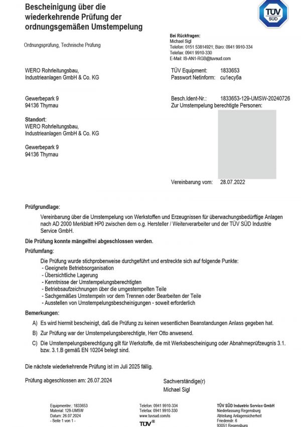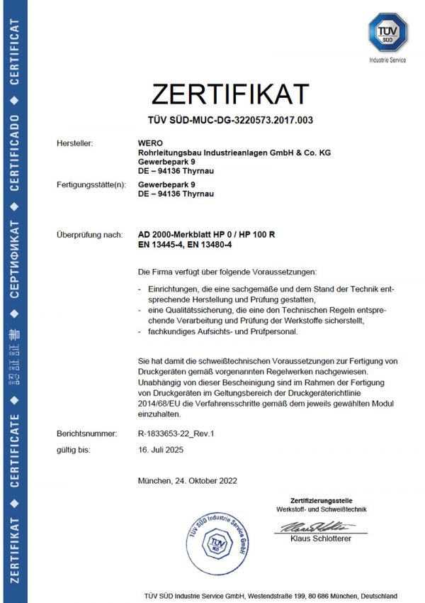 AD 2000 Merkblatt HP 0 / HP 100R, EN13445-4, EN13480-4