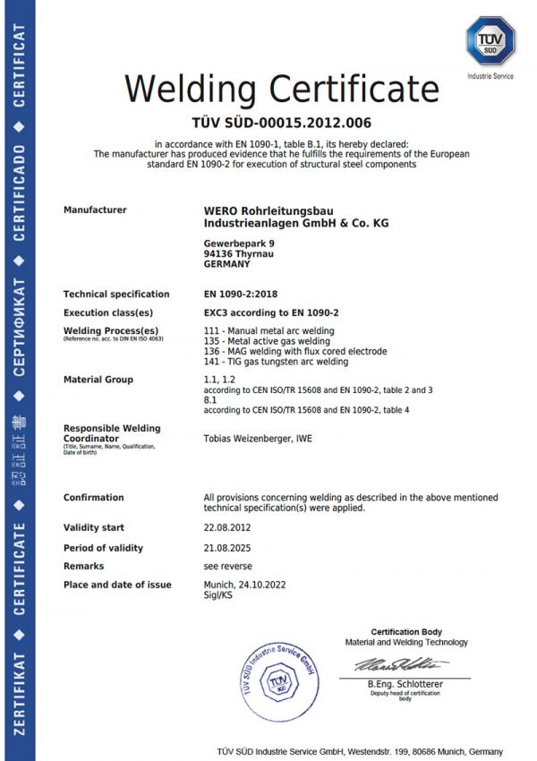 Qualität, Sicherheit und Nachhaltigkeit stehen bei uns an erster Stelle. Unsere zertifizierten Prozesse und hohen Standards garantieren zuverlässige Lösungen für unsere Kunden. Ob im Bereich Schweißtechnik, Anlagen-, Stahl- und Behälterbau, aber auch allgemein im Qualitätsmanagement – unsere Zertifikate sind ein Beleg für unsere Fachkompetenz und garantieren die technisch einwandfreie Abwicklung Ihrer Projekte.