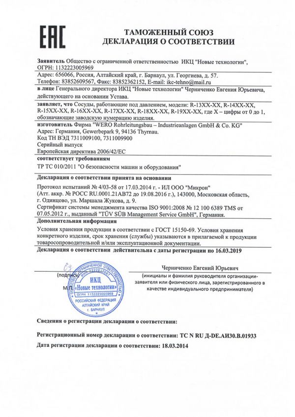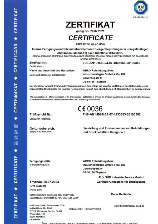 Module A2 Certificate in accordance with Directive 2014/68/EU