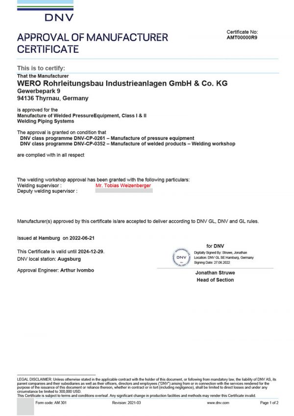DNV Approval DNV-CP-0261 / DNV-CP-0352