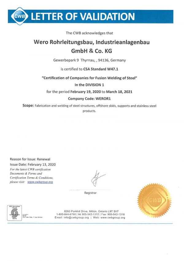 CSA Standard W47.1 Certificate - CWB Canadian Welding Bureau