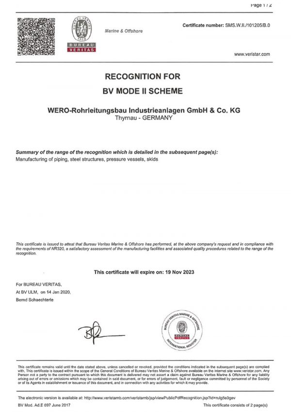 BV Bureau Veritas Mode II Certificate – Marine & Offshore Division